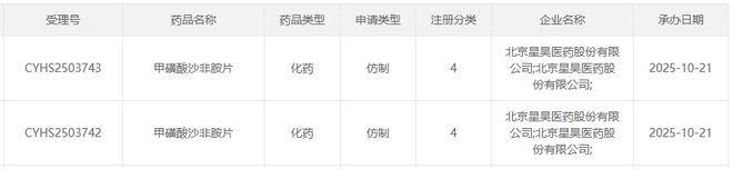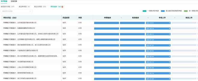 目前,国内甲磺酸沙非胺片仿制药市场尚处空白,原研药于2024年12月获进口批文,获批至今未满1年,国内申报竞争激烈。除北京星昊医药外,南京正大天晴石家庄四药四川科伦药业齐鲁制药华润赛科康恩贝等超20家企业纷纷加入首仿竞逐,产品均以新注册分类报产在审,竞争态势异常激烈。